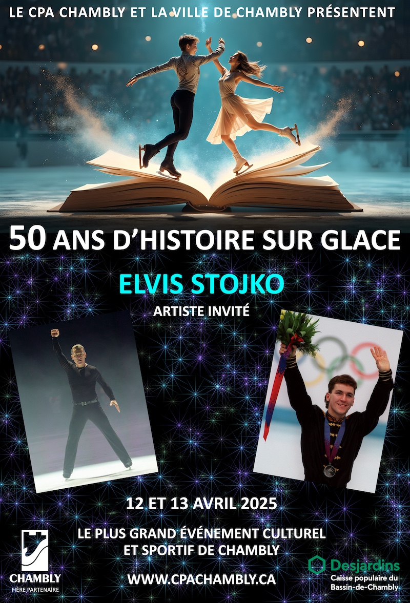 Revue sur glace 202550 ans d'histoire sur glaceTenue les 12 et 13 avril 2025, cette revue sur glace soulignait les 50 ans du Club aux côtés d'un invité très spécial : le légendaire Elvis Stojko, véritable icône du patinage artistique. |